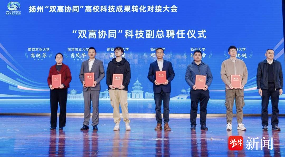 11月13日,“名城名校名企全方位融合教育科技人才一体化发展”扬州“双高协同”高校科技成果转化对接大会在扬州大学举行。现场举行扬州高新区与扬州大学、南京农业大学“双高协同”试点及扬州高新区—扬州大学协同创新工作站揭牌仪式,举行“双高协同”产业教授、科技副总聘任仪式,进行科技成果发布和项目签约。